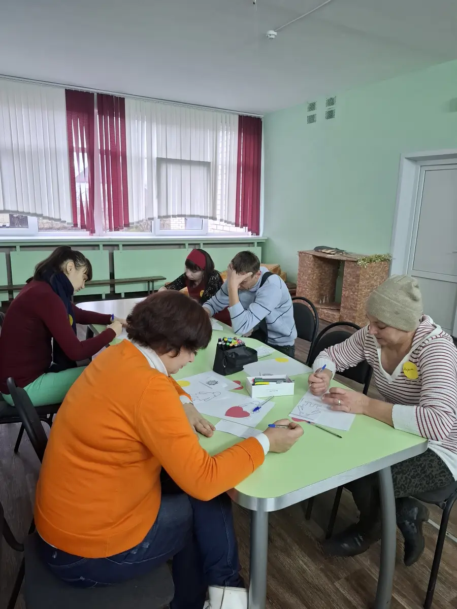 29.11.2025 в детском социальном приюте ГУО «Социально-педагогический центр Борисовского района» с родителями, чьи дети проживают в приюте, педагогом социальным, Волковой Светланой Леонтьевной, проведено занятие с элементами тренинга "Все в твоих руках. Поговорим о себе...". Цель занятия: способствовать самопознанию, самораскрытию, снятию психологических барьеров между родителями и детьми, развитию эмоционально-личностной сферы, для расширения границ общения и обучение навыкам эффективного взаимодейстивия, гармонизации детско-родительских взаимоотношений.